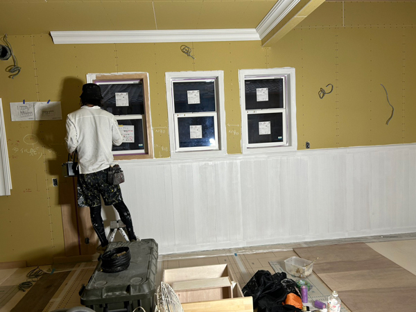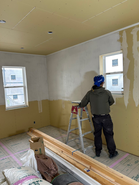 ユニットバスの周囲の壁にプラスターボード(PB)を貼っております