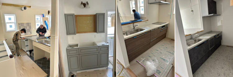 Cキッチン(天板無垢大理石)、洗面、A.Bキッチン据付け行っております