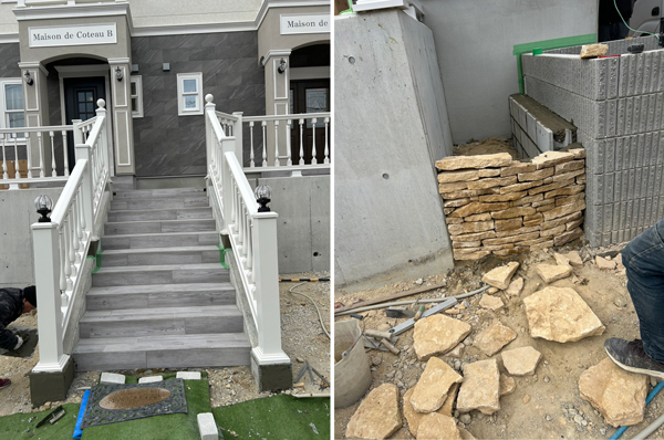 階段照明灯 花壇コッツウォルズストーン施工しております