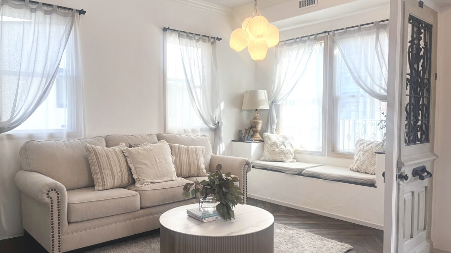 プチパリホームではお客様の暮らしや好みに合わせて、内装や外観はもちろん、照明、カーテン、カラーバランスや家具までをトータルにコーディネート。
