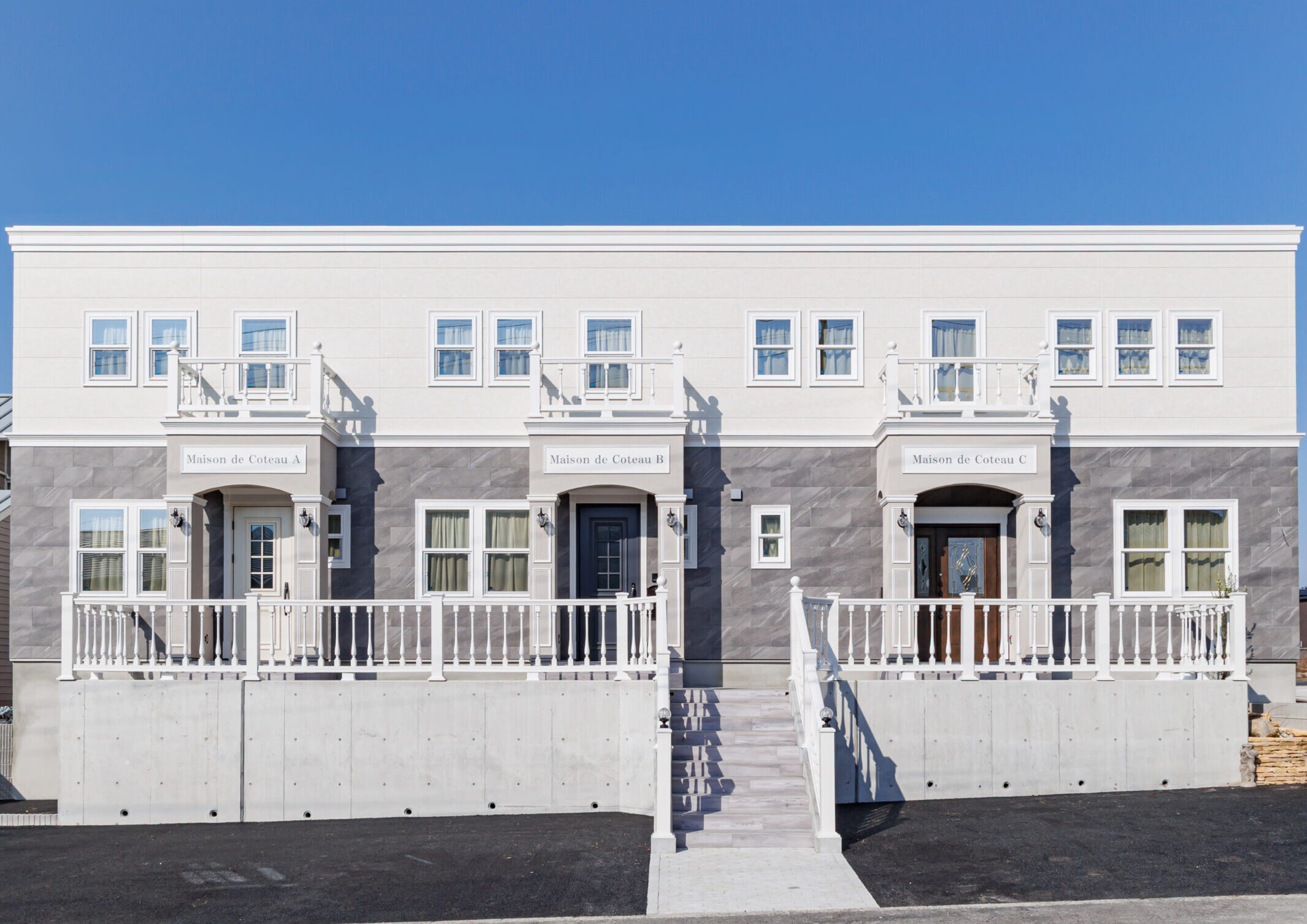 フランスの街並みを彷彿とさせる端正なシンメトリー、柔らかな曲線を描くアイアン手すり、そして上質な色彩の調和。