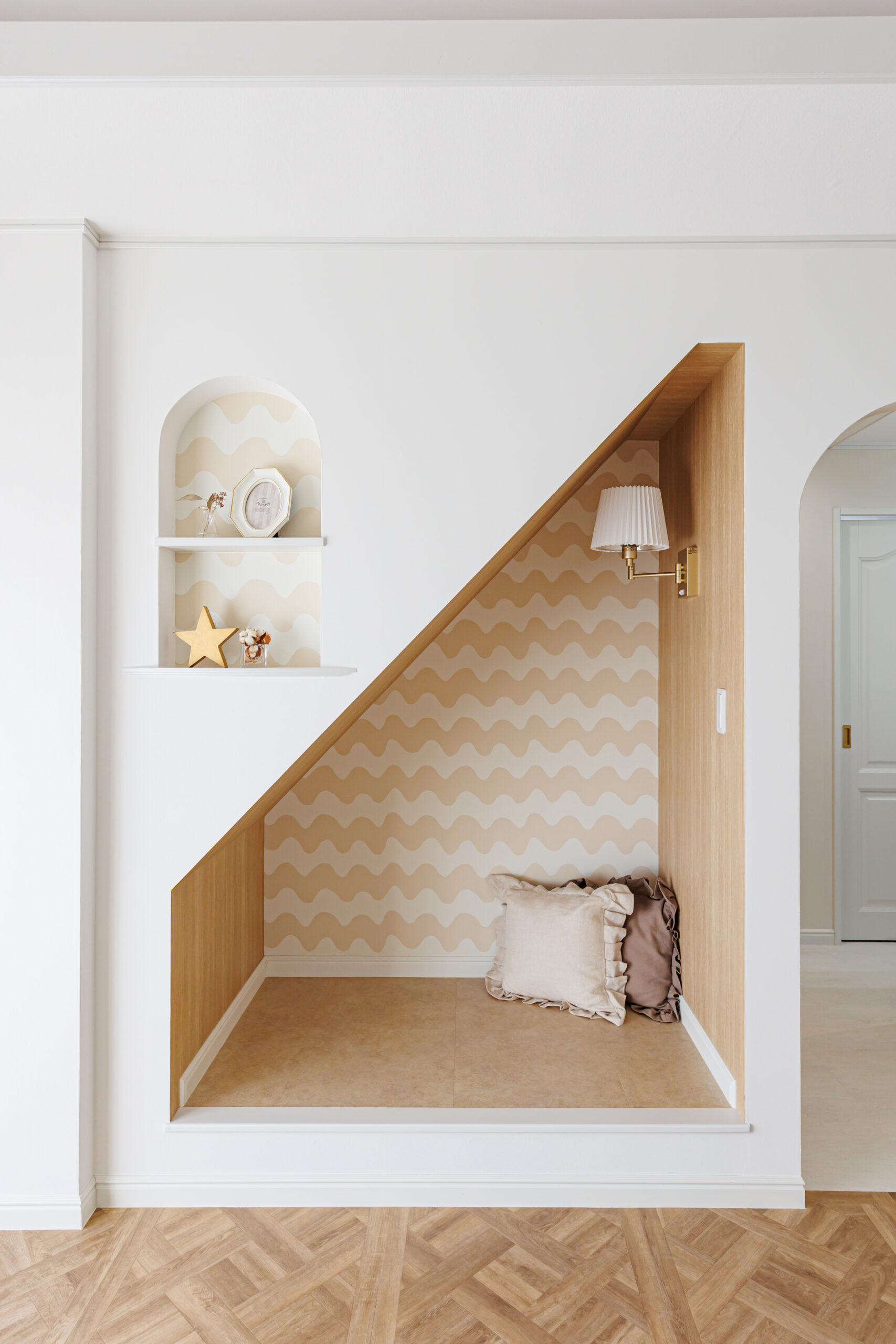 階段下はヌックに大変身!腰掛けたり読書したり・・・お洒落でおこもりできる空間になりました